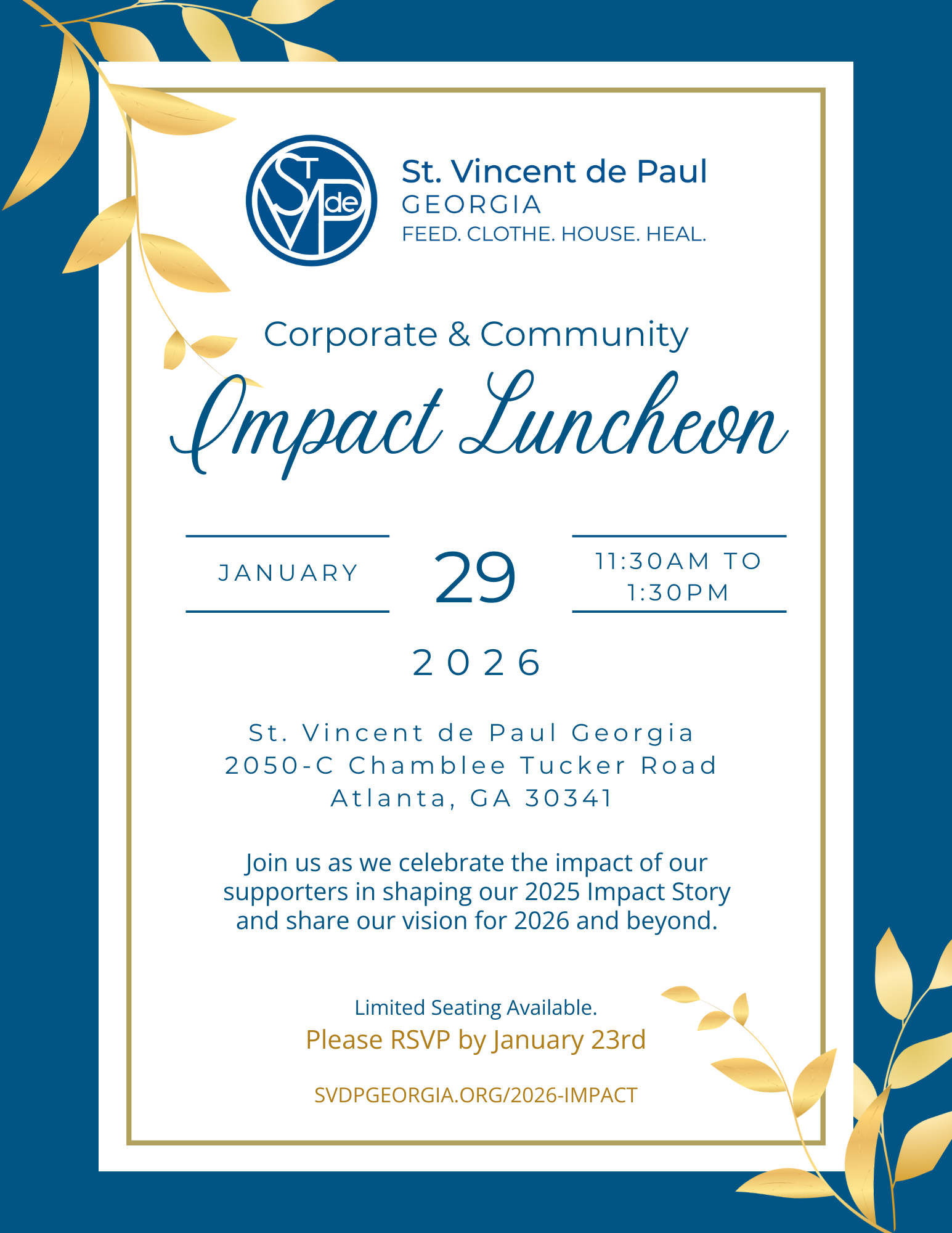 Join us as we celebrate the impact of our supporters in shaping our 2025 Impact Story and share our vision for 2026 and beyond. Online registration is now closed. Please email Dave Mangels (dmangels@svdpgeorgia.org) with any questions.